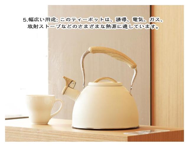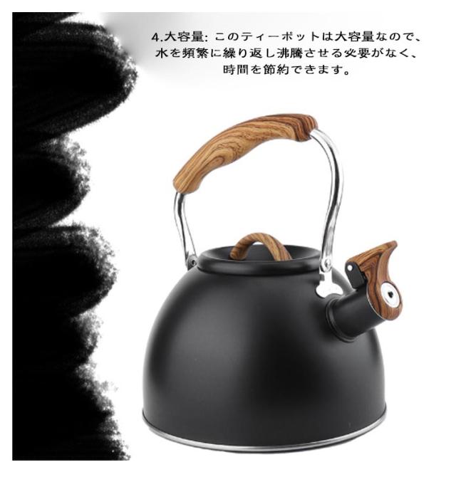 | 3L大容量 アウトドアにも便利な笛吹きケトル IH・直火対応 商品ポイント 1.口笛を吹くティーポット: 家事、映画、音楽などに集中しているときに、ティーポットが水が沸騰していることを思い出させてくれます。 2.ステンレス鋼:ティーポットはプロの食品グレードの素材、ステンレス鋼プロセスで作られており、錆びや腐食に強く、色あせしにくく、お手入れが簡単で、加熱が速いです。 3.エンジニアリングプラスチックハンドル: 火傷の危険なくティーポットを直接持ち上げることができ、人間工学に基づいたティーポットハンドルは、注ぐときや注ぐときにさらに快適になるように設計されています。 4.大容量: このティーポットは大容量なので、水を頻繁に繰り返し沸騰させる必要がなく、時間を節約できます。 5.幅広い用途: このティーポットは、誘導、電気、ガス、放射ストーブなどのさまざまな熱源に適しています。 | |