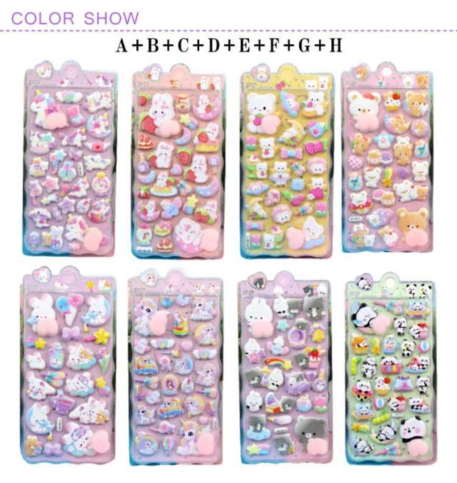 【8枚セット】 ぷくぷくシール 3D 立体シール お尻シール ぷっくりシール 手帳 おはじきシール シール手帳 おしりぷにぷにシール おしりシール つやつや 3Dシール 女の子 ご褒美シール かわいいシール 泡ステッカー 送料無料