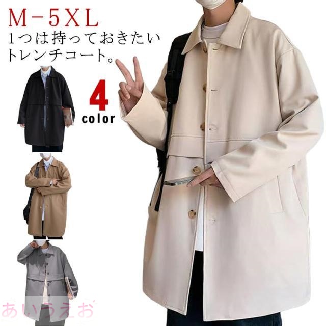 トレンチコート ロングコート スプリングジャケット メンズ アウター カジュアル ゆったり チェスターコート 春秋服 春コート 細身 メンズ ロング ビジネスコート スリム 無地 コート ビジネス 秋 冬 大きいサイズ M L XL 2XL 3XL 4XL 5XL