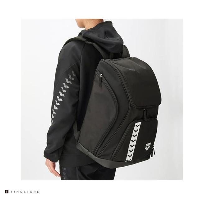 | 上部の大きい間口が練習や試合で必要な荷物を収納しやすく、サイドには大きめの縦ポケットとメッシュポケットが付いています。 正面にはすぐに取り出したい物をしまうことができる小物ポケット付き。 背負った際にすっきり見えるシルエットになっているので、エントリーユーザーから学生スイマーにおすすめのバックパックです。 上蓋部にはチーム名などのマーキングが可能なので、チームで揃えるのもおすすめ。 |