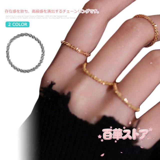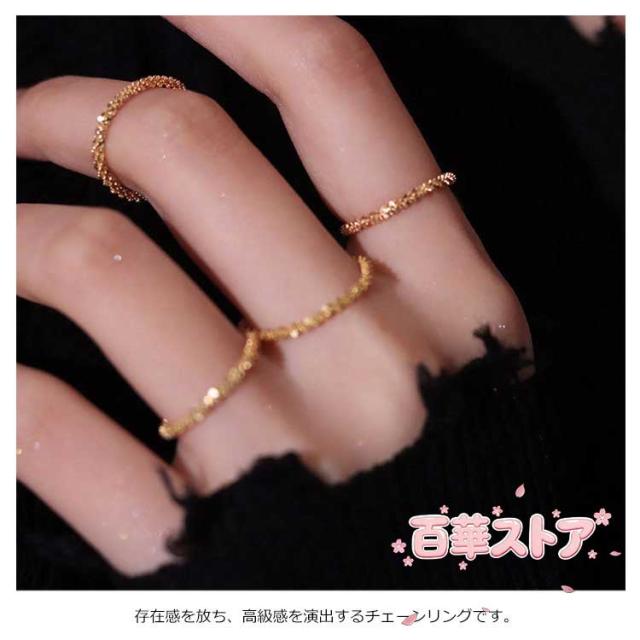指輪 レディース リング 細め キラキラ スパイラル チェーンリング かわいい シンプル 個性的 デザイン性 シック 華奢 エレガント おしゃれ シル