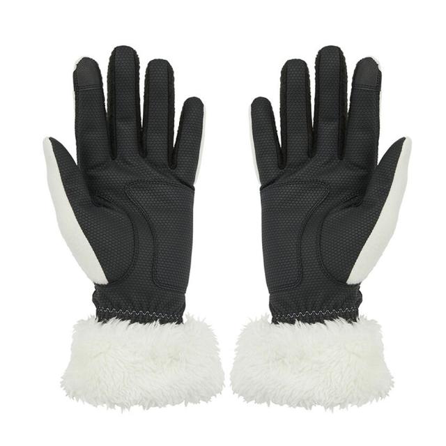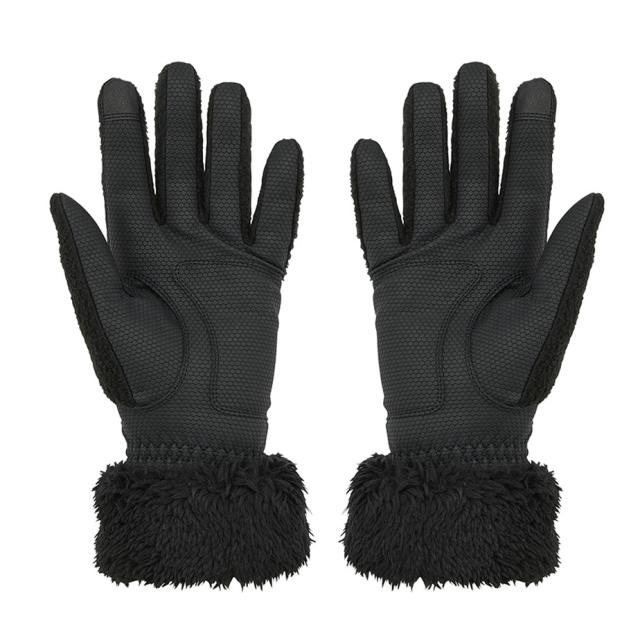 ふわふわなボアとラメ入りのタブが特徴的なレディス冬用グローブ。甲側には保温性の高い両面フリース生地を採用、タブ下のスリット部の防風カーテンに加えて、リスト部は吸湿発熱ボアを配置し長めにすることで、さらに保温性アップとUVケア機能を実現したレディス専用設計モデル。手のひら部はハニカムエンボス加工により高いグリップ性能を発揮。ボアのファッション性だけでなく、保温性、機能性を兼ね備えたレディス冬用グローブ。