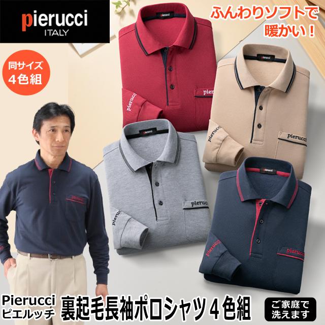 Pierucci(ピエルッチ)裏起毛長袖ポロシャツ4色組 メンズ 紳士 秋冬 長袖 あったか お洒落 贈り物 プレゼント ワイン ネイビー ベージュ グレー 暖か 防寒