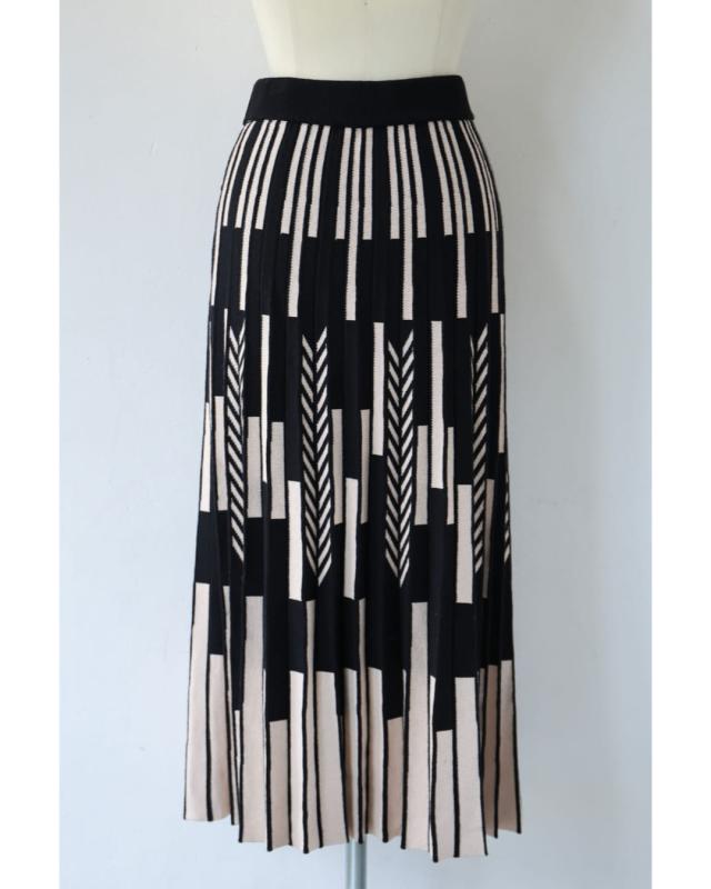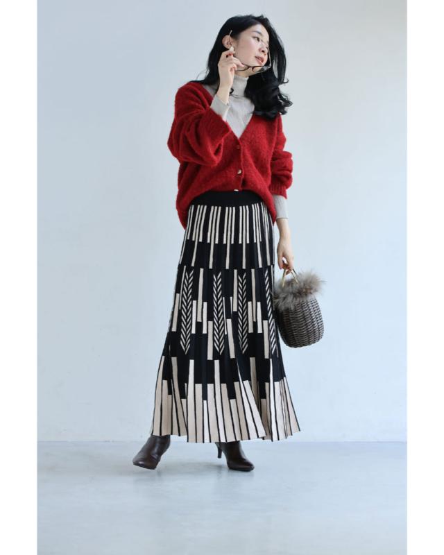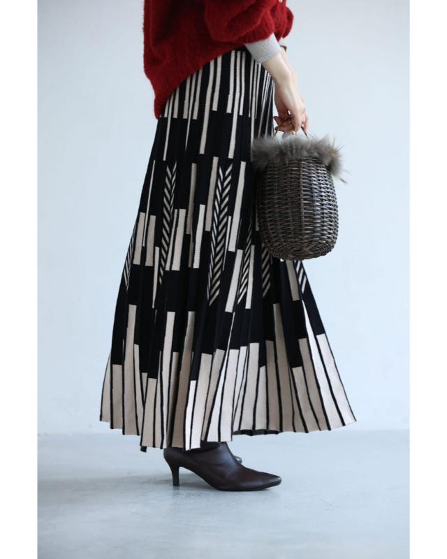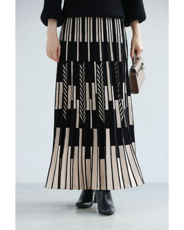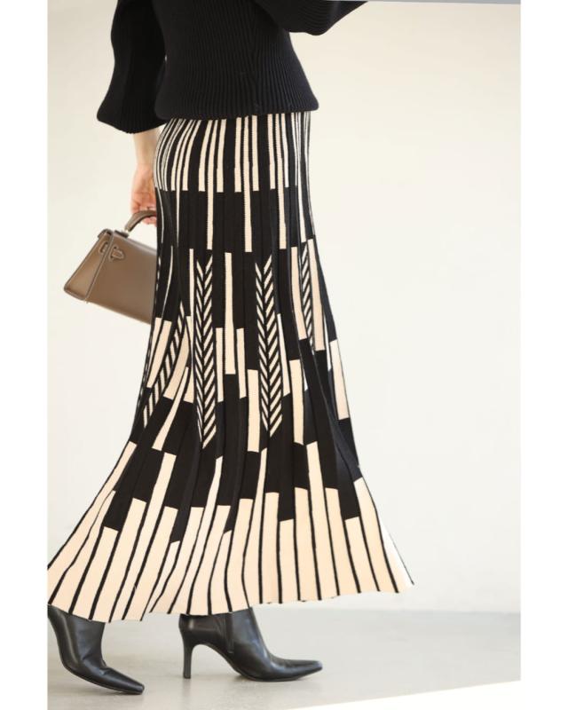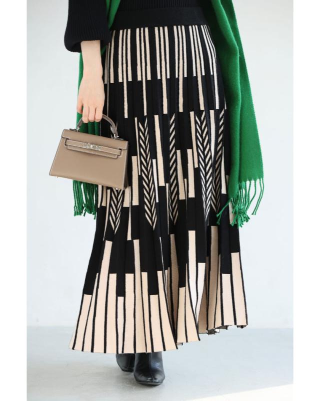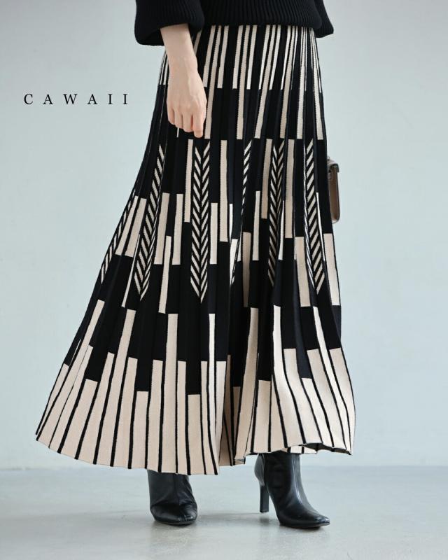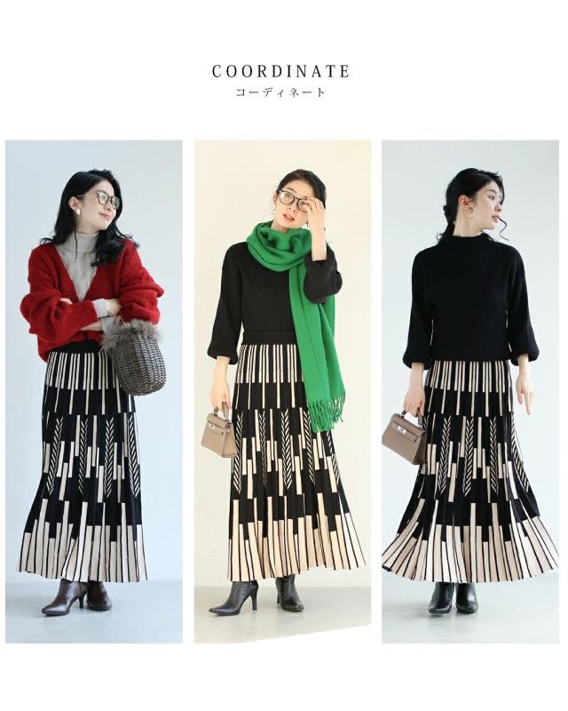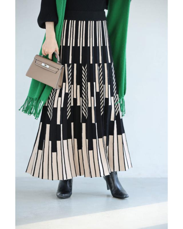 w61640ps 新作 新着 再入荷 CAWAII FRENCHPAVE フレンチパヴェ エレガント ベーシック カジュアル 可愛い かわいい カワイイ おしゃれ オシャレ お洒落 個性 個性的 定番 ベーシック 大人かわいい 大人可愛い 上品 女性らしい デザイン スタンダード ナチュラル きれいめ キレイめ シンプル フェミニン レディース レディースファッション 大人 ママ ミセス 30代 40代 50代 60代 幾何学柄 山折りプリーツ ニット ロング スカート ウエストゴム ゴム 総ゴム S M L ワンサイズ フリー 小さめ 小さい 低身長 痩せ ほっそり 小柄 細身 標準サイズ 大きめシルエット 大きい ビッグシルエット ゆったり F サイズ自由 春 秋 冬 秋服 秋物 冬服 冬物 体型カバー 伸縮 ブラック 黒 普段着 日常使い デイリー 仕事 会社 通勤 OL おでかけ 女子会 買い物 デート デザイン性