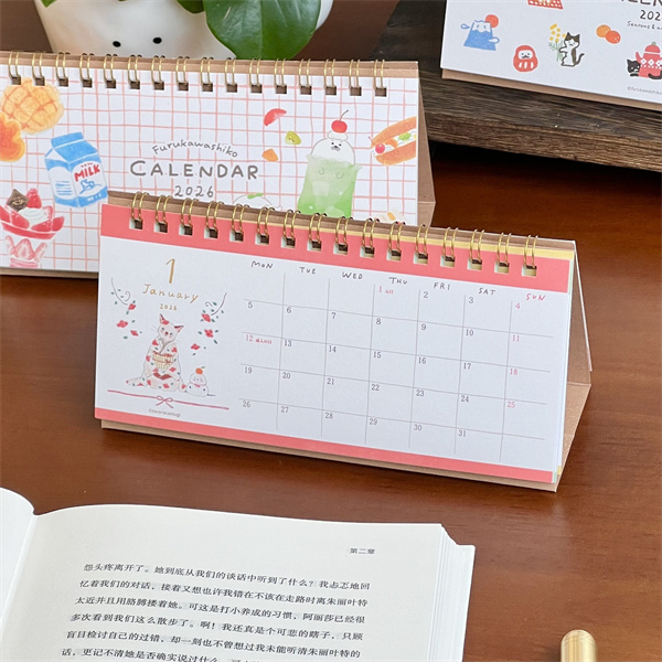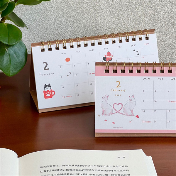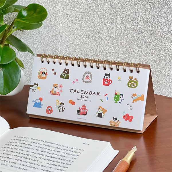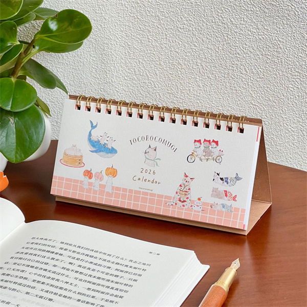 2026カレンダー 卓上カレンダー カレンダー 超かわいい ねこ 喫茶 動物 プラン 令和8年 癒やし系 カフェ オリジナルイラスト 手帳