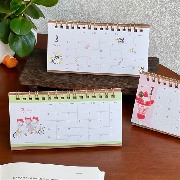 ◎卓上カレンダー プランニングに便利な年間カレンダー付き。