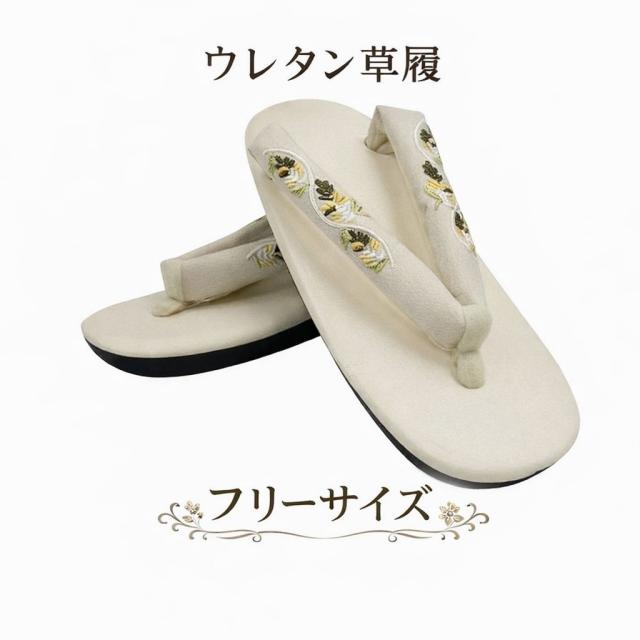 草履 レディース 和装 ウレタン草履 刺繍 軽量 女性 痛くない ウレタン 着物 ぞうり 上品 卒業式 和装草履 フリーサイズ ぼかし ベージュ地 松葉柄 No.10