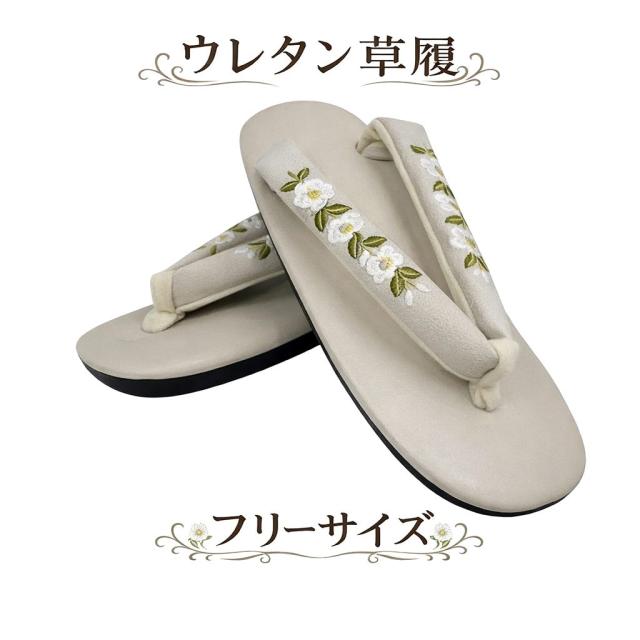 草履 レディース 和装 ウレタン草履 刺繍 軽量 女性 痛くない ウレタン 着物 ぞうり 上品 卒業式 和装草履 フリーサイズ ぼかし シルバー地 椿柄 No.13