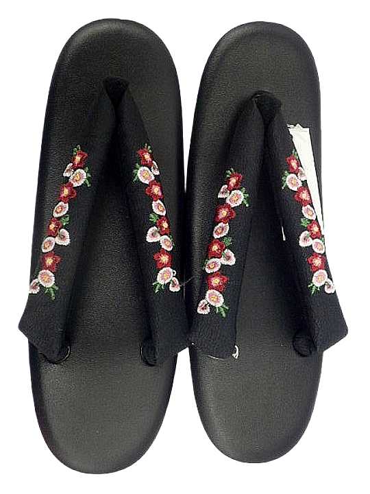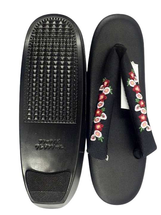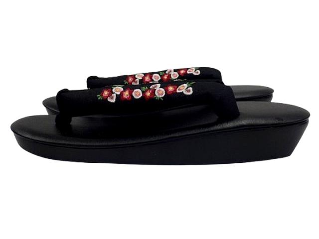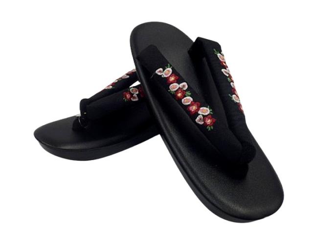 草履 レディース 和装 ウレタン草履 刺繍 軽量 女性 痛くない ウレタン 着物 ぞうり 上品 卒業式 和装草履 フリーサイズ 黒地 小花柄 No.17