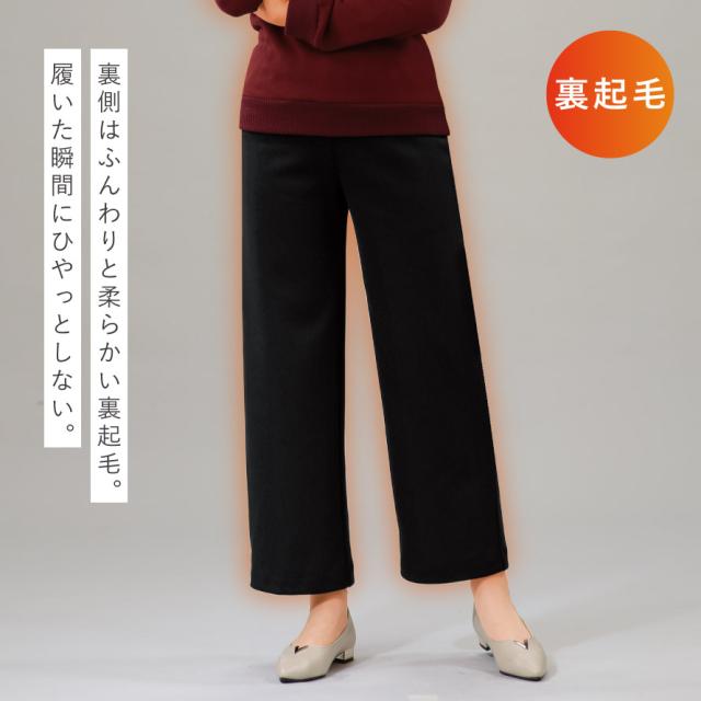 裏起毛 ワイドパンツ 股下63cm 冬 レディース きれいめ 日本製 あったか 裏起毛パンツ 暖かい ウエストゴム 体型カバー ミセス 女性 大きいサイズ ゆったり 裏起毛あったかミラクルワイドパンツ 股下63cm