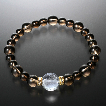 白水晶1個(12mm珠 ヒツジ刻印)、スモーキークォーツ9個(8mm珠)、16個(6mm珠)、ロンデル2個(6×3mm 真鍮/ラインストーン)[サイズ]約17cm(内周)[重量]約15g[中糸]ポリウレタンゴム[付属品]専用巾着袋[個装サイズ]縦15.8×横10.0×高さ2.0(cm)/25(g)