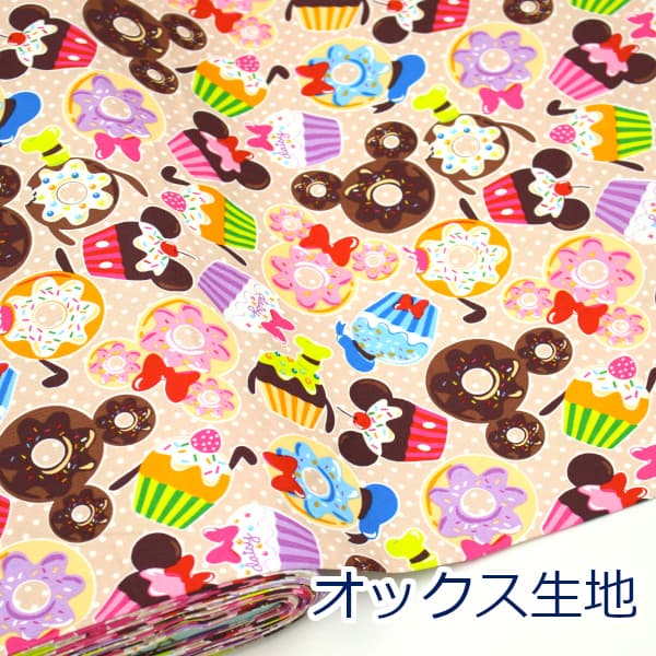 【10cm単位価格】 ミッキー&フレンズ スイーツ柄 モカ ミッキー オックス 綿100% 生地 布 約110cm幅 GR-1150 入園入学 無料レシピ ゆうパケット2m対応( ハンドメイド 手作り レッスンバッグ シューズ入れ 手芸 巾着 日本製 )