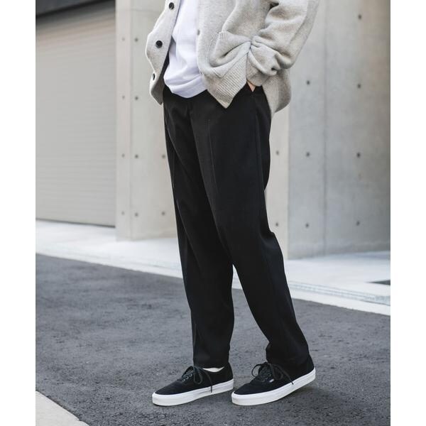 すっきりとしたテーパードシルエットで、きれいめシャツやニットはもちろん、トレンドのオーバーサイズトップスやスウェットなどのカジュアルアイテムとも好相性。