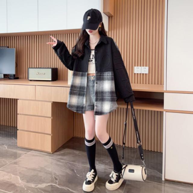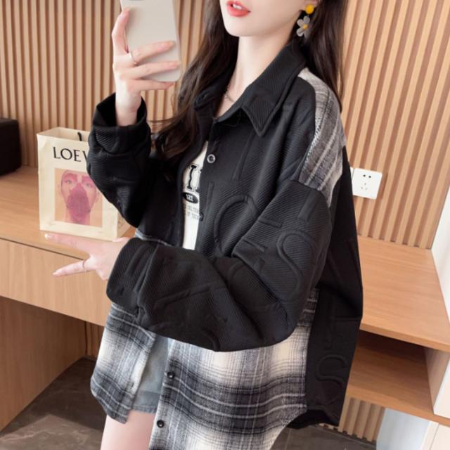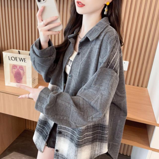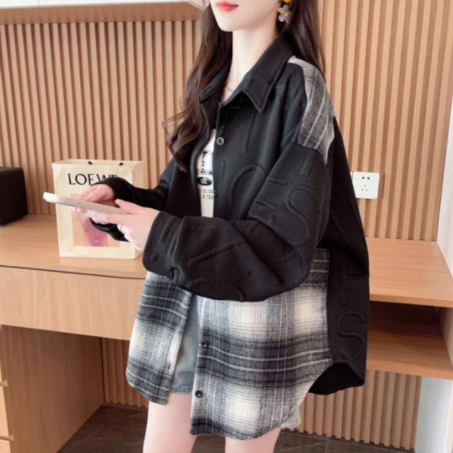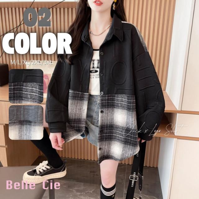シャツ 羽織り シャツアウター 長袖 個性的 切替 チェック 秋冬 レディース 韓国ファッション ストリート モード ロゴ おしゃれ かっこいい 柄