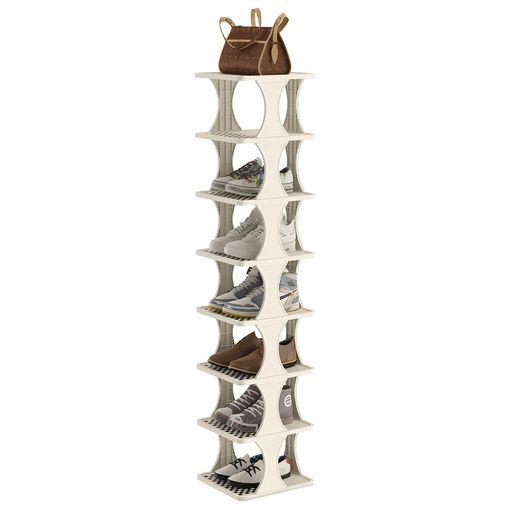 「高さ自由セット可能」:8段のラックですが、好みの高さや収納する靴の数に合わせて1列、2列、3列にDIYセット可能で、小さな子どもでも簡単に靴を収納できます。