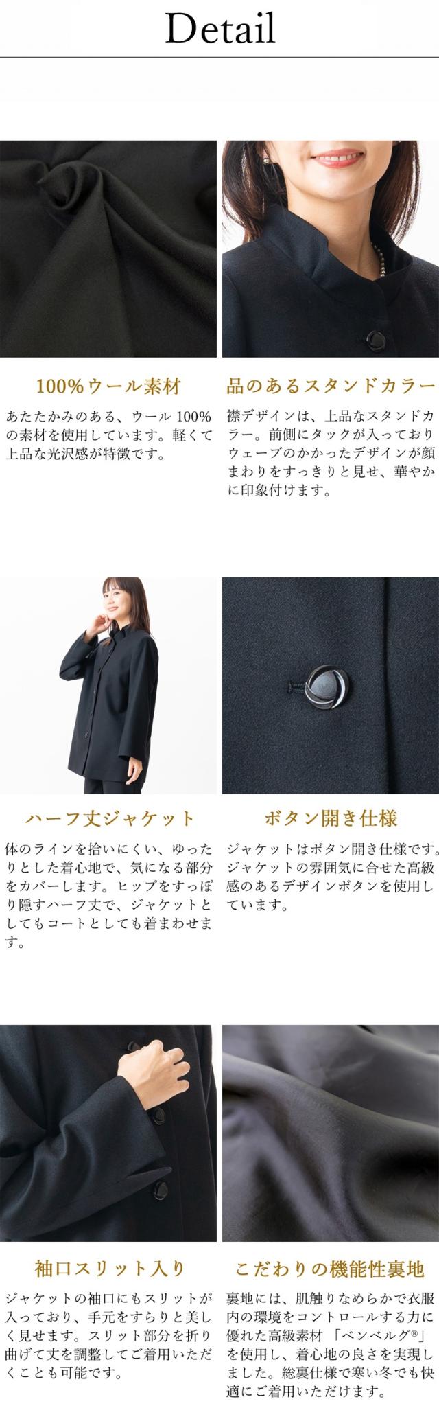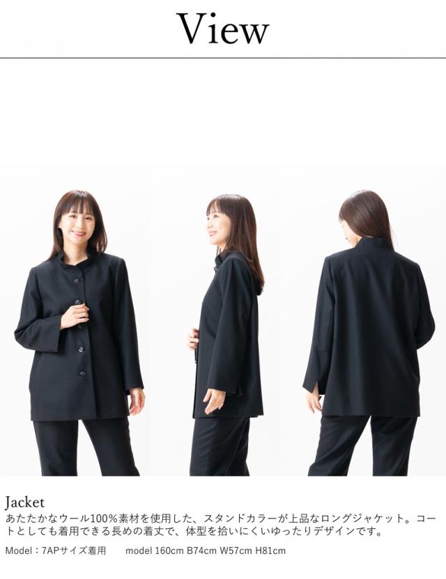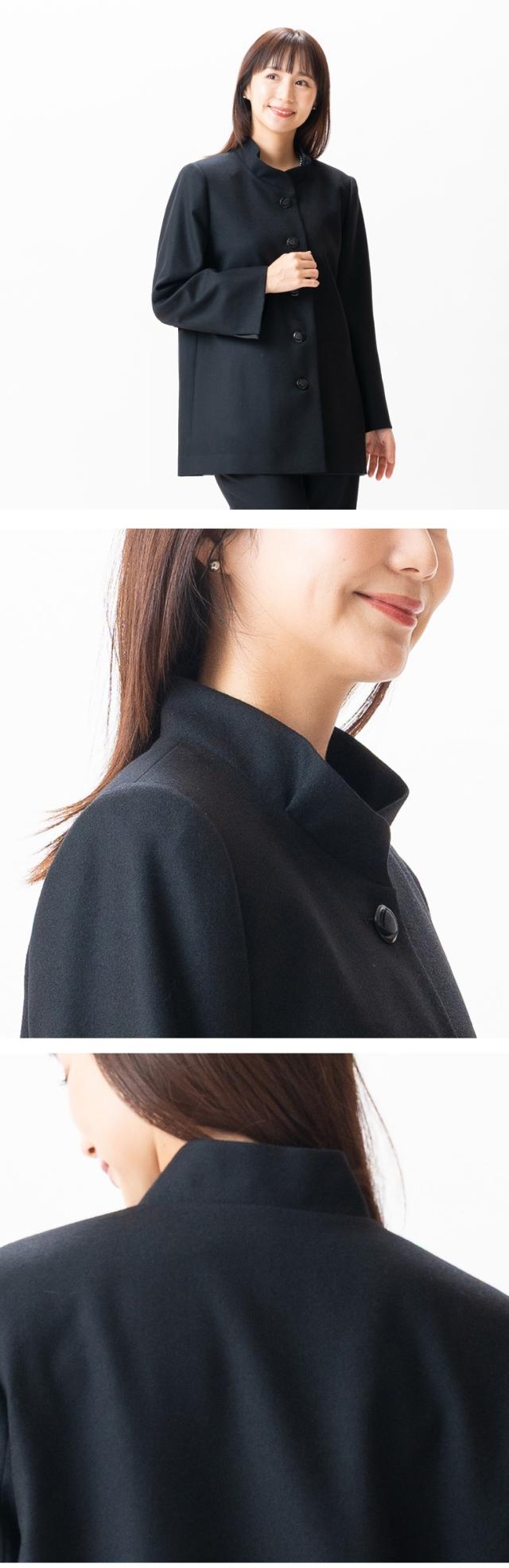 ウール100% ロング丈 スタンドカラージャケット すっきり ゆったり 完全国内縫製 送料無料 弔事 慶事 礼装 20代 30代 40代 50代 60代 ミセス ママ