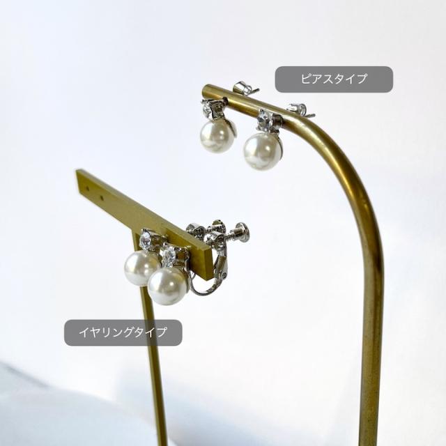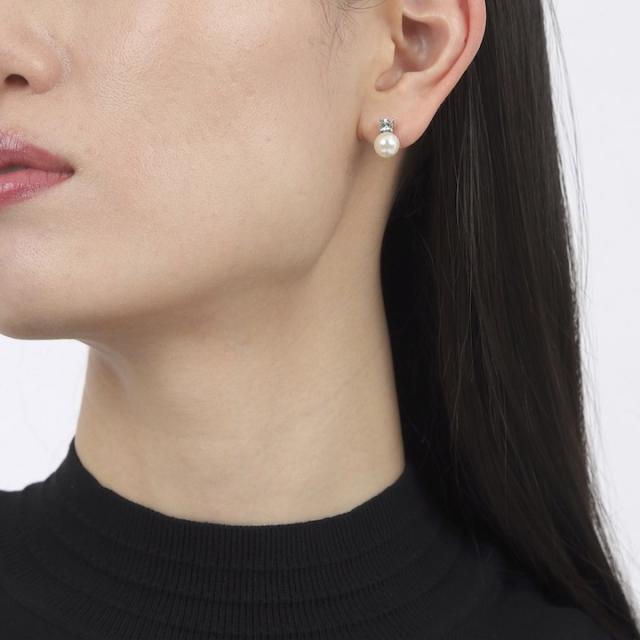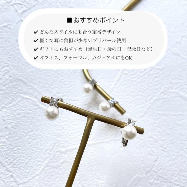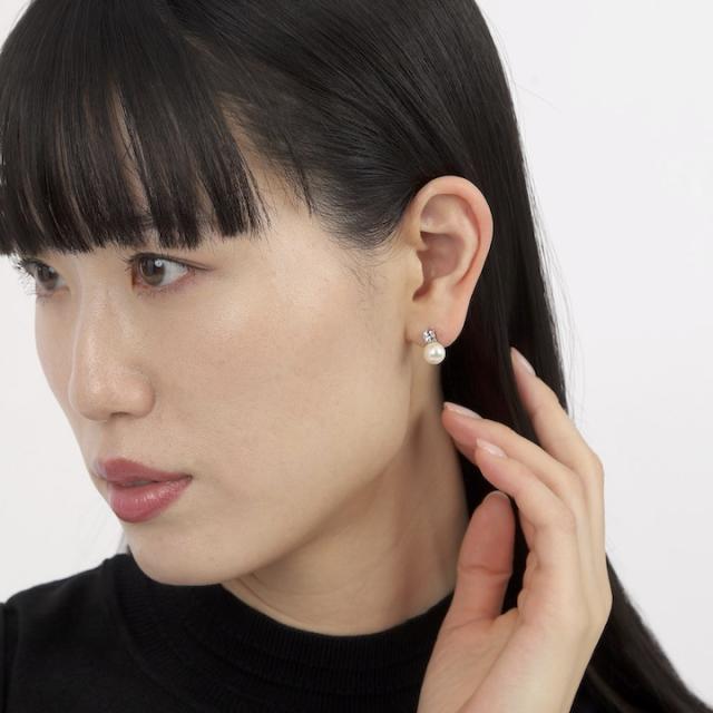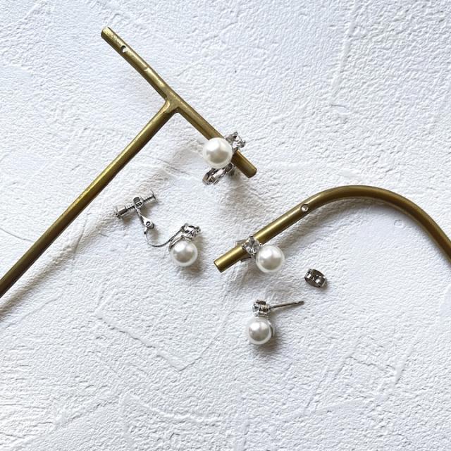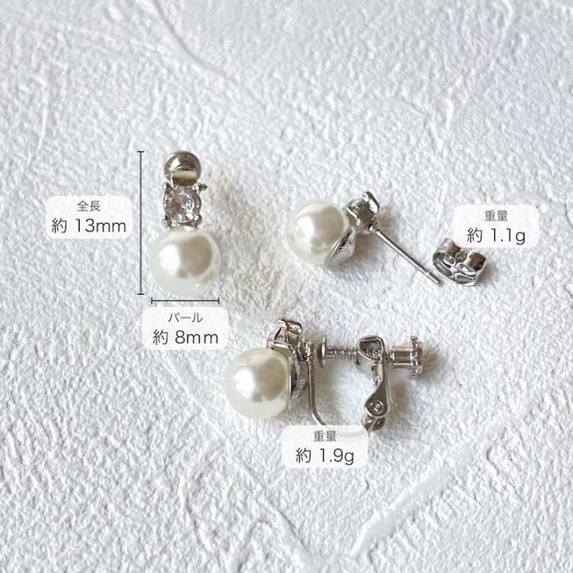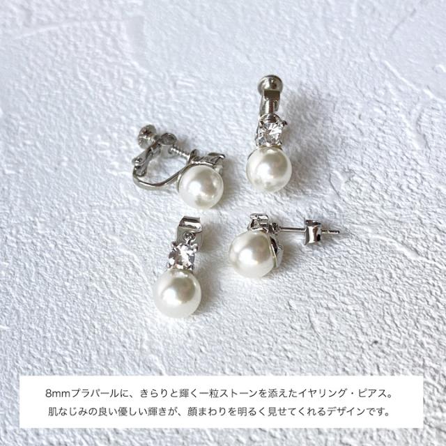 8mmプラパールに、きらりと輝く一粒ストーンを添えたイヤリング・ピアス。