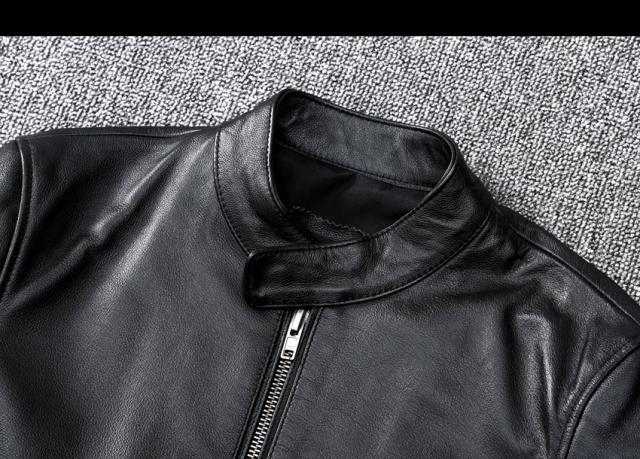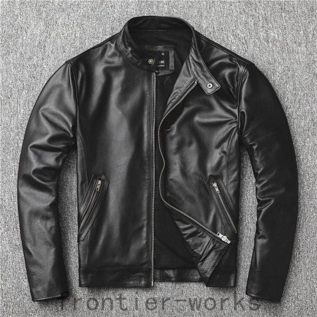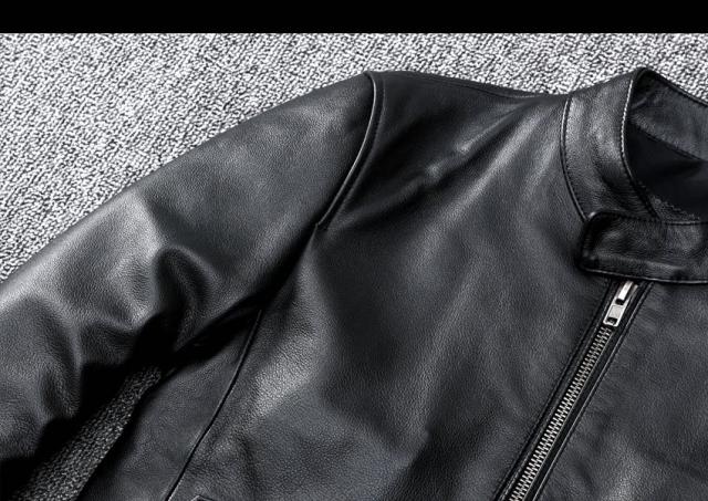 革ジャン レザージャケット メンズ 本革 バイク ライダース 牛革 羊革 シングル ショート スリムタイプ 細身 ミリタリー レザーコート-81
