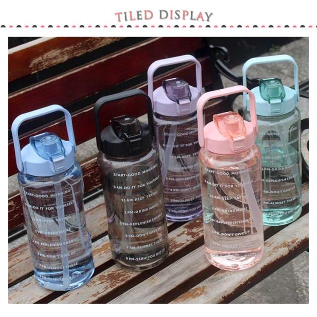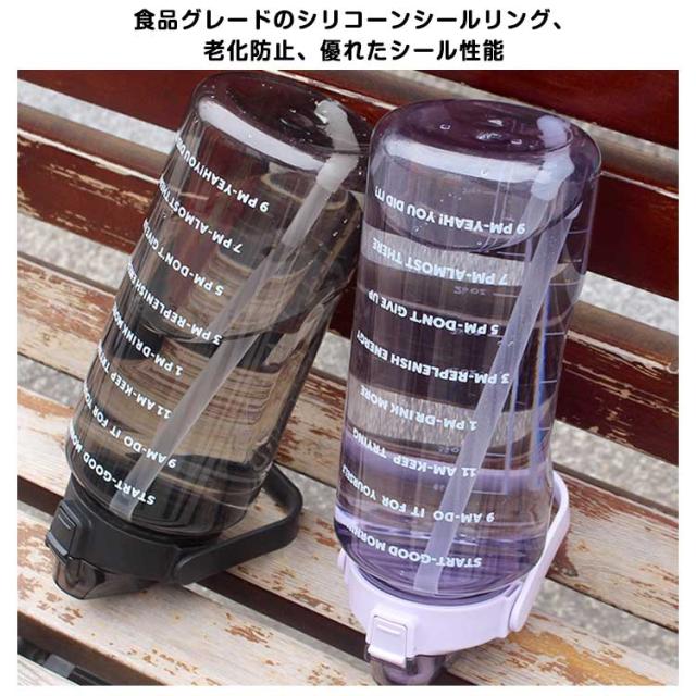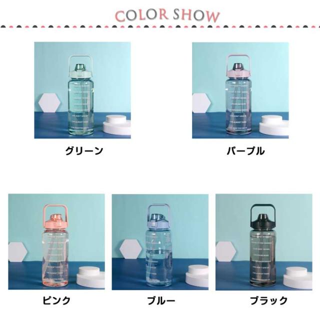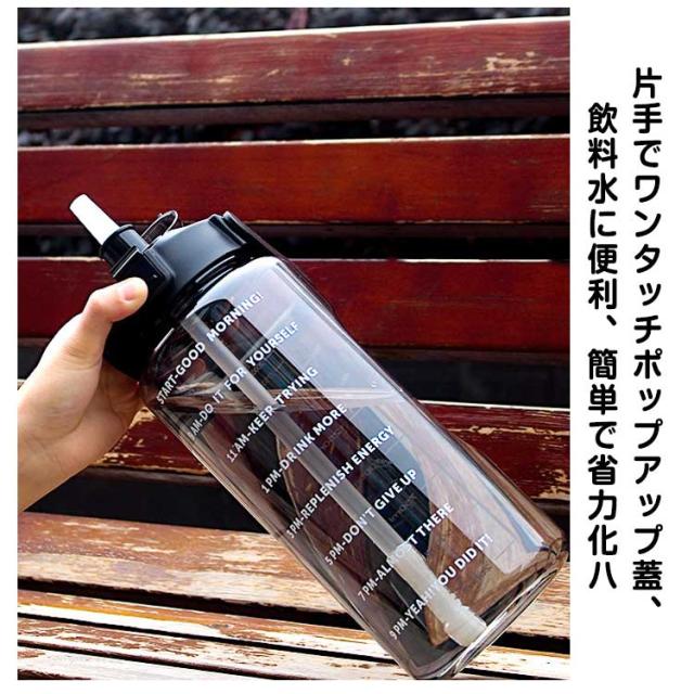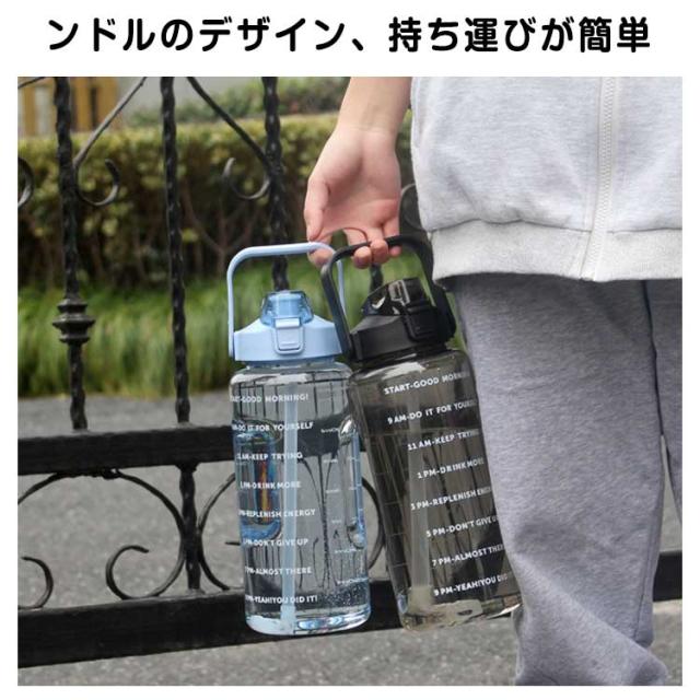 透明 カラー ウォーターボトル 水筒 2リットル 2L 水筒 ウォーター ボトル タイムマーカー 子供 キッズ 目盛り ワンタッチ 軽量 直飲み 女の子 男の子 おしゃれ 可愛い