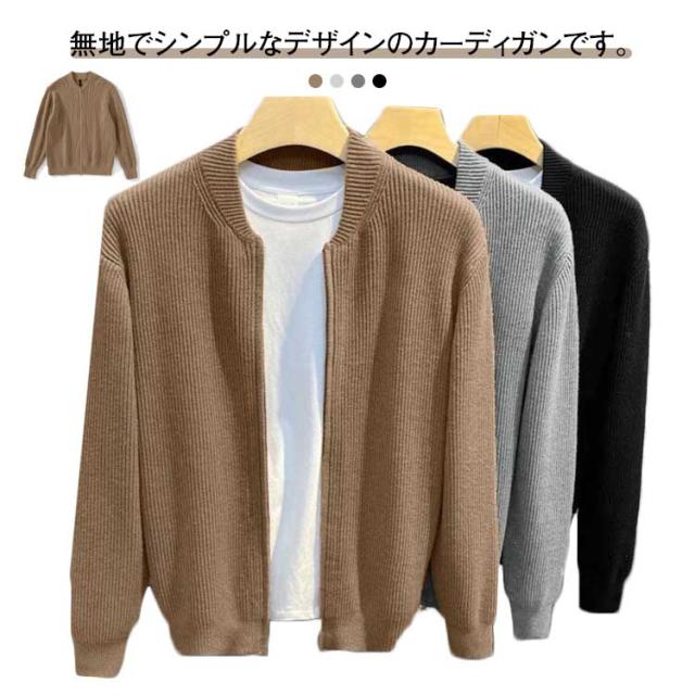ニット カーディガン メンズ ジップアップ Vネック セーター ダブルジップ アウター 立ち襟 前開き スリム ビジネス ストレッチ シンプル カジュアル 洗える 秋冬
