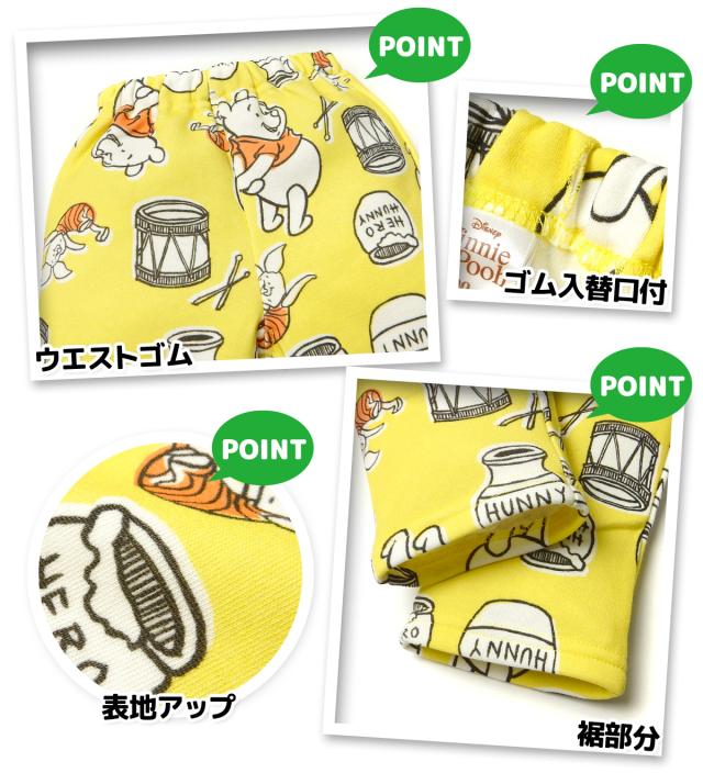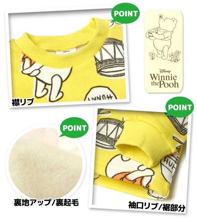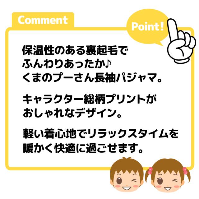 【送料無料】男児 女児 ベビー 裏起毛 長袖 パジャマ Disney ディズニー くまのプーさん 上下組 あったか素材 保温性 ベビー服 男の子 女の子 80cm 90cm 95cm iw-1479b-ye【メール便対応】