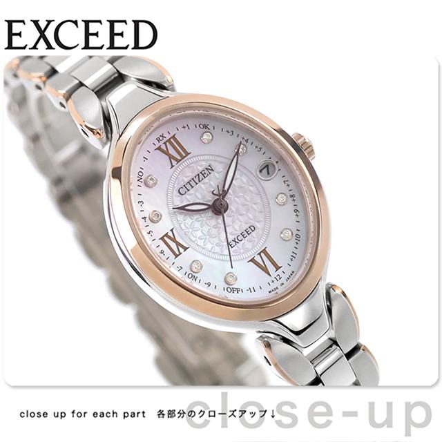 シチズン エクシード ダイレクトフライト エコ・ドライブ電波 腕時計 ブランド レディース チタン ダイヤモンド 電波ソーラー CITIZEN EXCEED ES9515-53N アナログ ホワイトシェル 白 日本製 高級 おしゃれ 防水 軽い 華奢 かわいい プレゼント 女性 実用的