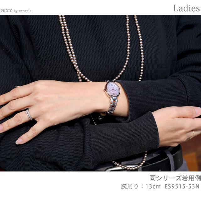 正規品 7年保証キャンペーン 送料無料 シチズン エクシード ダイレクトフライト チタン ダイヤモンド 電波ソーラー 日本製 レディース 腕時計 ES9515-53N CITIZEN EXCEED アナログ ホワイトシェル 白 ◆確かな品質と洗練されたデザイン。大人のためのドレスウオッチ、シチズン EXCEED(エクシード)。優雅なデザインが人気のお花をモチーフにしたバンドに、サイズ感にこだわったオーバルケースの新作が登場しました。バンドから繋がるようなケースラインがエレガントな印象を演出しています。優れた視認性を確保しつつ、腕の細い方でも着けやすいサイズ感を実現しました。ES9515-53Nは、ブラウンのローマ数字インデックスと針を採用し、8ポイントのダイヤモンドをセッティング。ピンクの白蝶貝文字板に小花のパターンを彫刻で表現した、艶やかさと華やかさあふれるデザインです。 発売日:2025年12月発売