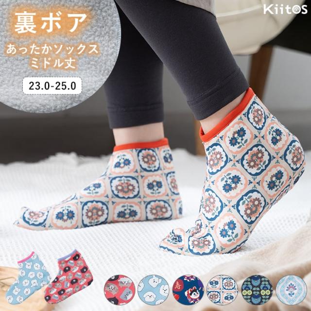ルームソックス 裏ボア 靴下 レディース ミドル丈 アンクルソックス 暖かい 防寒 あったか 秋 冬 滑り止め付き かわいい おしゃれ 大人 寒さ対策 冷え性 冷え取り 裏起毛 23cm 24cm 25cm プレゼント ギフト