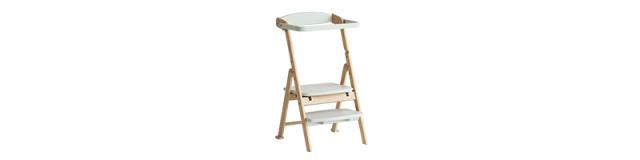 成長に合わせて使える3WAY仕様の多機能チェア「Kitchen assister & Chair -ema-」。小さな踏み台を下に付ければお手伝いを支えるラーニングタワーに、上に付ければ食事に便利なハイチェアとして活躍します。大きい踏み台は耐荷重80kgで、大人のステップとしても使える丈夫なつくり。折りたたむと幅わずか21cmとコンパクトになり、隙間収納も可能です。丸みのあるフォルムや滑り止め加工など、お子さまが安心して使える工夫を随所に施した、日常に寄り添う木製アシスターチェアです。