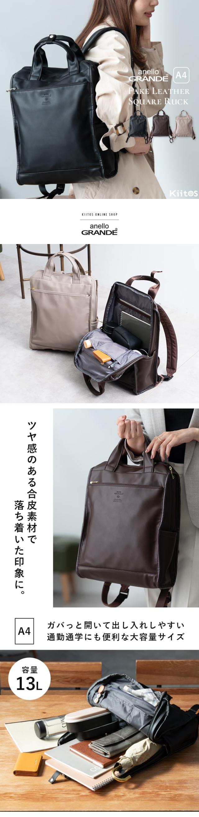 リュック レディース 通勤 ブランド アネロ anello GRANDE 10ポケット 大容量 パソコン きれいめ 軽量 フェイクレザー 合皮 a4 13l 自立 スクエア メンズ トート 2way ビジネスバッグ 大人 かわいい おしゃれ 大きめ 通学 学生 プレゼント ギフト
