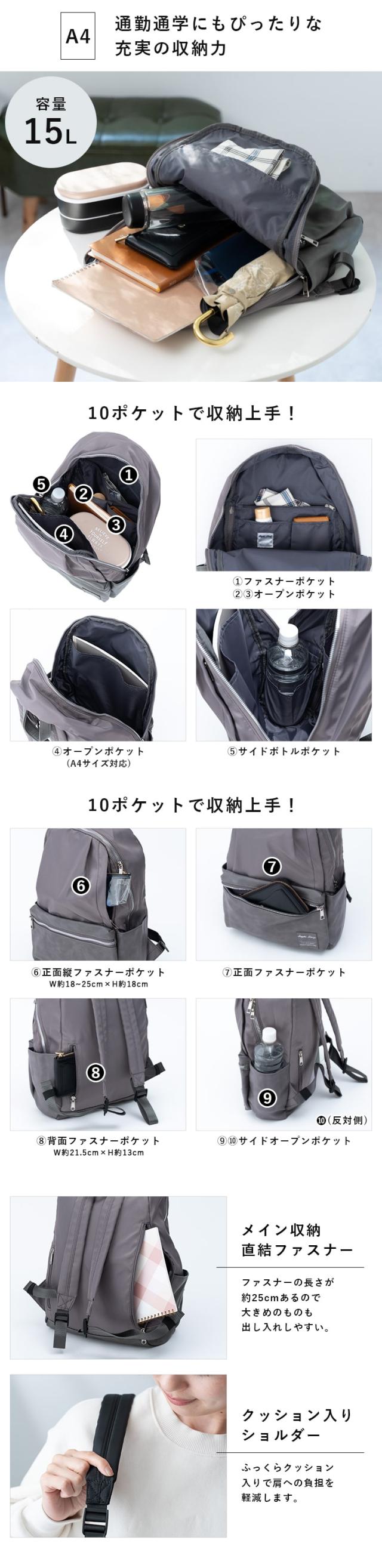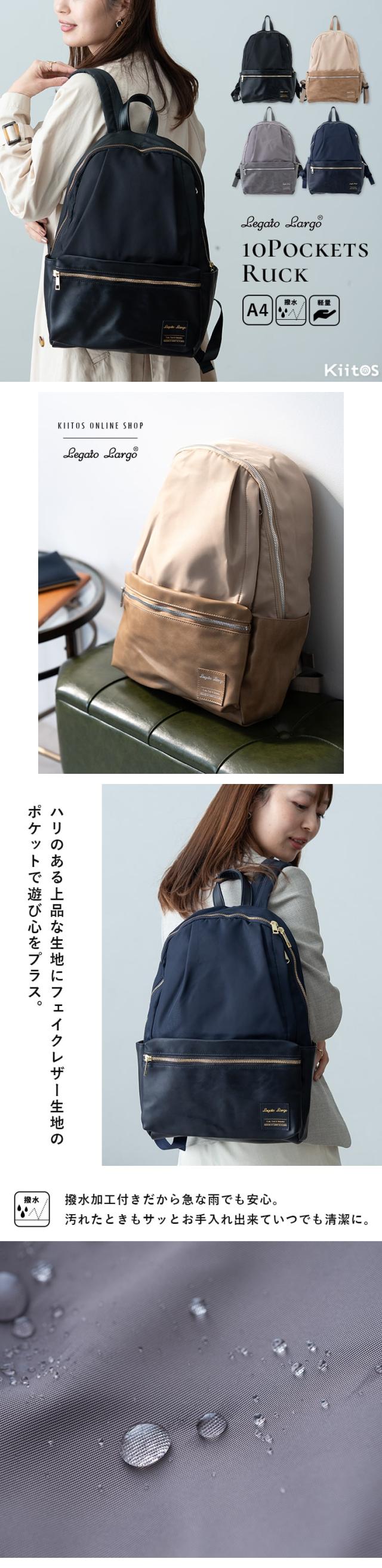 リュック レディース ブランド レガートラルゴ Legato Largo 通勤 撥水 10ポケット 軽量 自立 ビジネスバッグ きれいめ a4 大容量 大きめ 通学 学生 仕事 旅行 15l 背面ファスナー 肩にやさしい 疲れにくい バックパック 20代 30代 40代