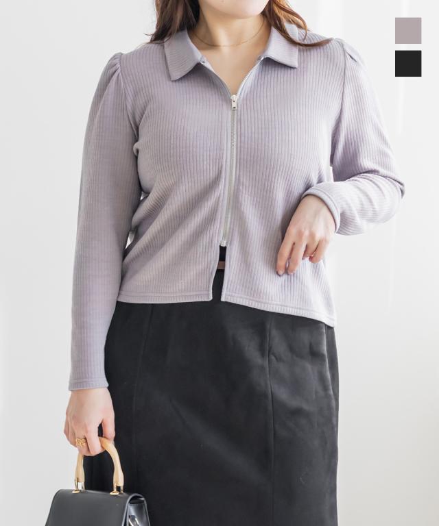 大きいサイズ/レディース/3L/4L/襟付きフロントジップリブプルオーバー