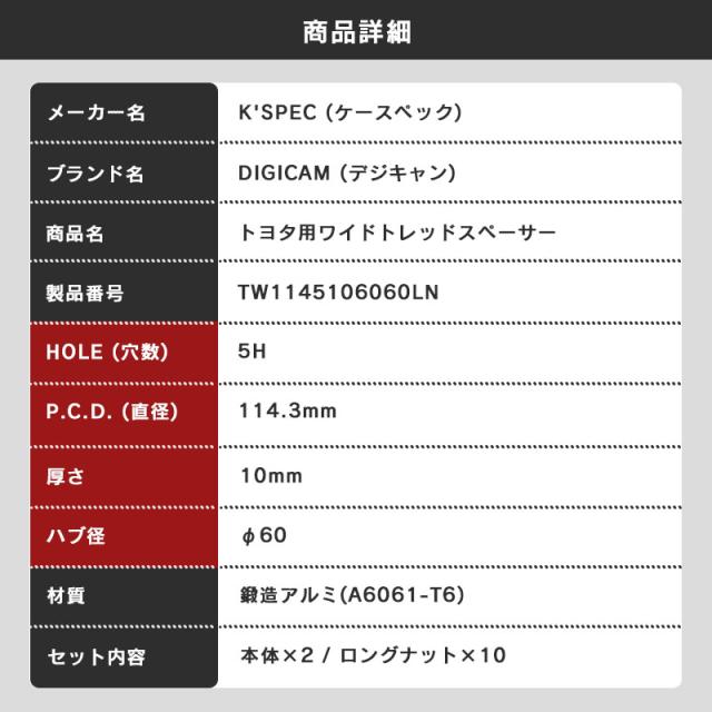 トヨタ用 ワイドトレッドスペーサー ロングナット PCD114.3 5H 10mm 60-60 デジキャン ワイトレ DIGICAM TW1145106060LN