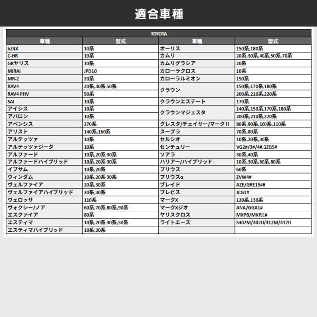 *トヨタ車汎用ですが、平面座の純正ナットを使用した純正アルミホイール装着車に限り取付可能です。
