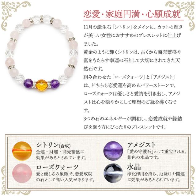 【11月デザイン★選べる3種】天然石 パワーストーン ブレスレット 巾着付き 癒やし 恋愛 金運 シトリン モスアゲート ローズクォーツ・アメジスト・タイガーアイ・ オニキス 当店オリジナル メンズ レディース 男 女 アクセサリー プレゼント _MB2511