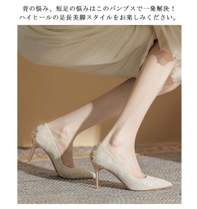ポインテッドトゥ パンプス レディース 春夏秋冬 結婚式パンプス 痛くない 履きやすい 美脚 ヒール5/6.5/8.5cm キラキラ 結婚式 入学式 卒園式 小さいサイズ お嬢様風 ウェディング キラキラパンプス 6センチヒール キャバ 母の日