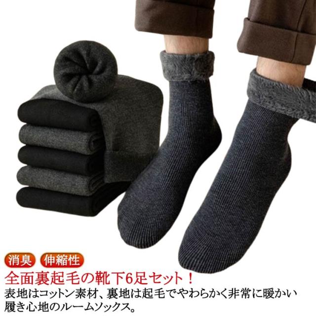 | 全面裏起毛の靴下6足セット!表地はコットン素材、裏地は起毛でやわらかく非常に暖かい履き心地のルームソックス。 足先から足首まで、たっぷり裏起毛に仕上げた。 吸湿性、消臭性、通気性、耐久性にも優れています。 伸縮性に優れた素材でフィット感が良く、締め付けも無く。 仕事、レジャー活動に適応する冬用靴下です。 寒い中でアウトドアに長時間いる時もこれがあれば安心。 | |