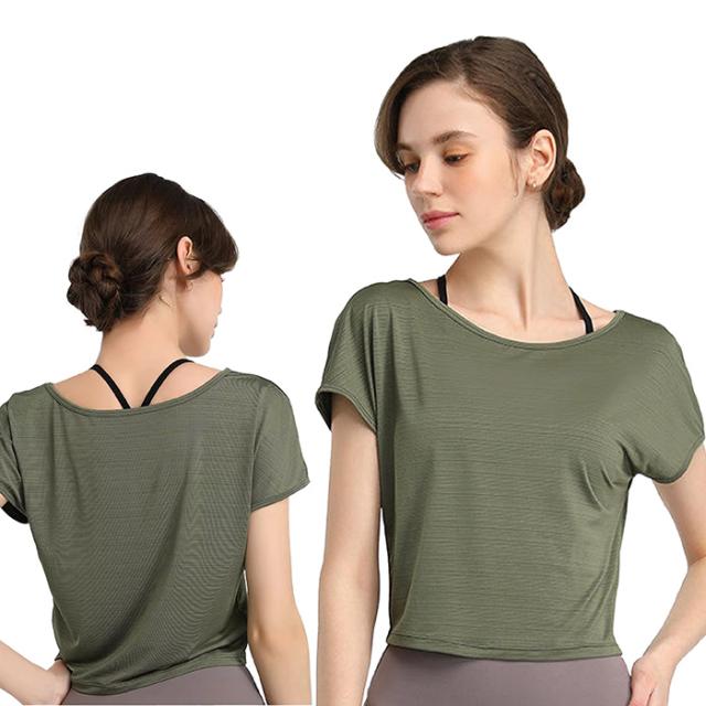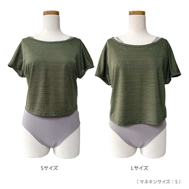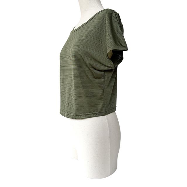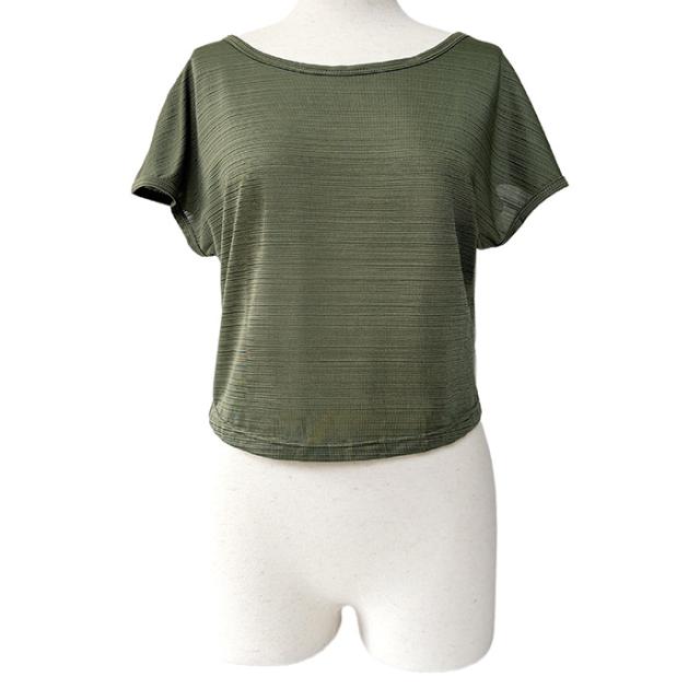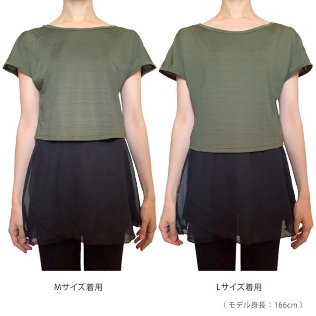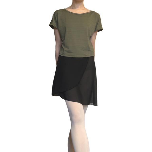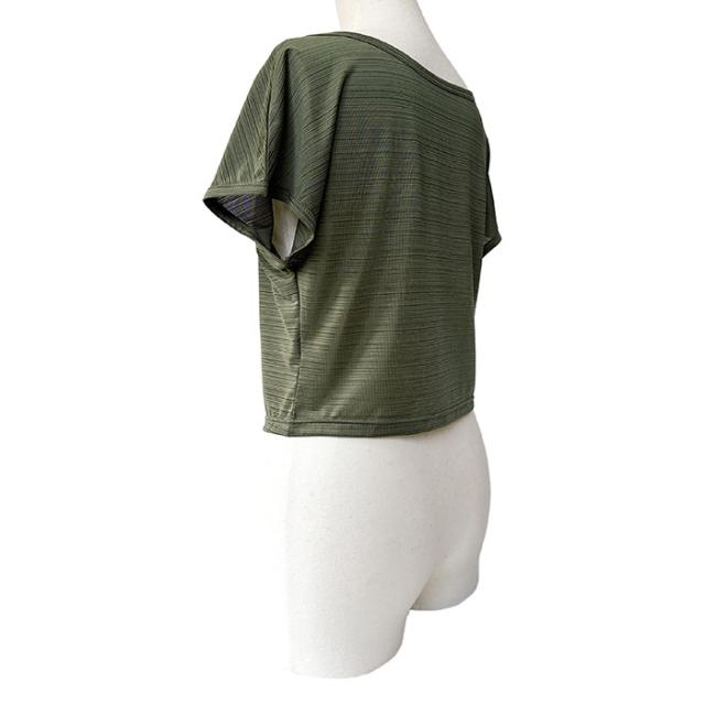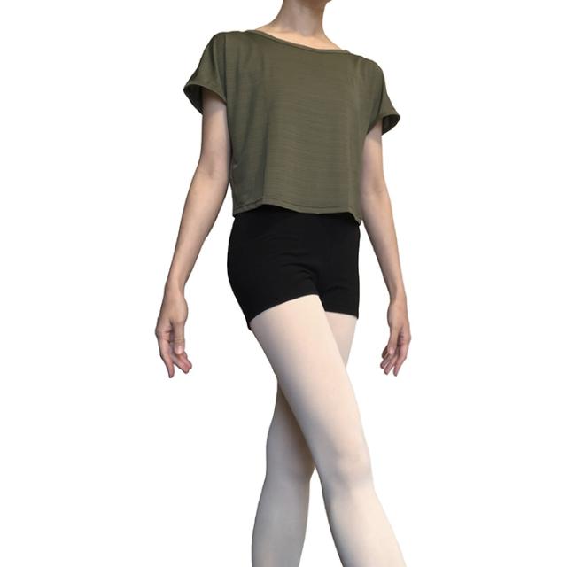 バレエ トップス ストレッチ Tシャツ 半袖 大人・ジュニア ティーシャツ 伸縮 無地 レッスン 練習 着 定番 シンプル シャツ 襟 広め デコルテ 背中 カーキ くすみ 緑 155 160 165 170