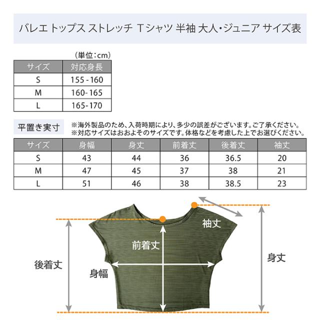 商品名:バレエ トップス ストレッチ Tシャツ 半袖 大人・ジュニア