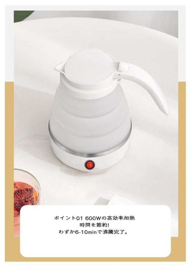 ポータブル 電気ケトル 600ml 折りたたみケトル ポット シリコン 車中泊 折りたたみケトル マイケトル 持ち運び 電気ポット ケトル やかん トリップケトル 高速 湯沸かし器 湯沸かしポット 空焚き防止 軽量 電気 一人暮らし シンプル コンパクト 旅行