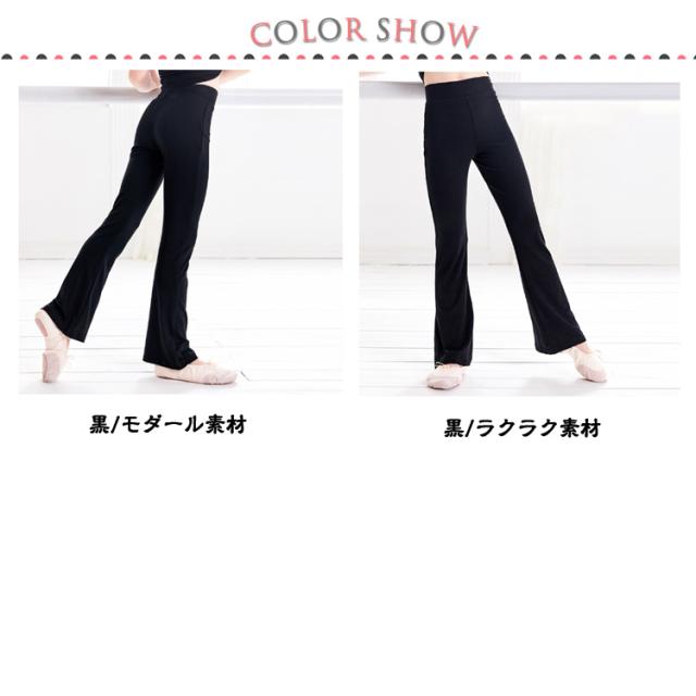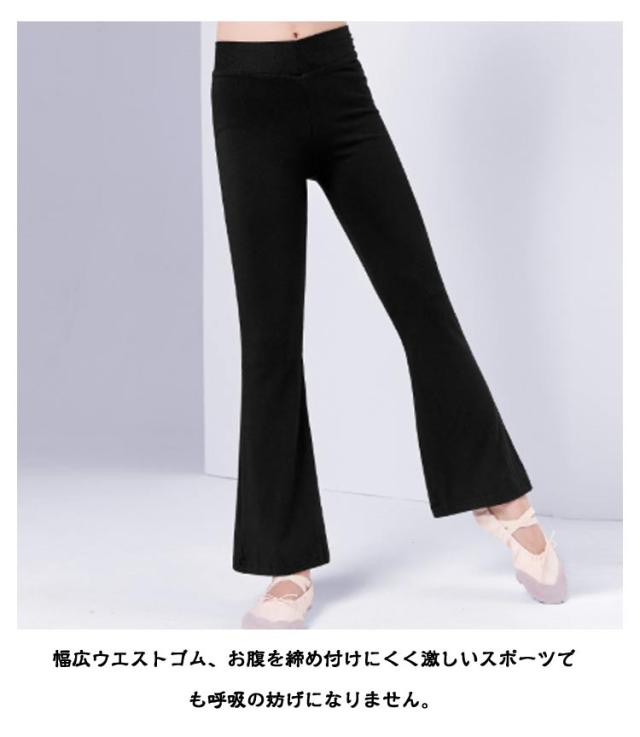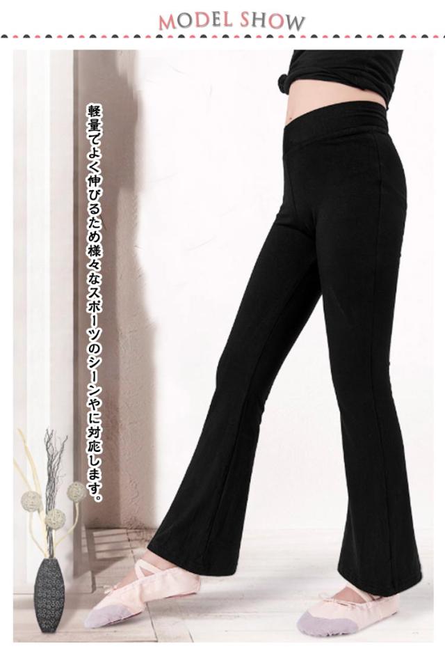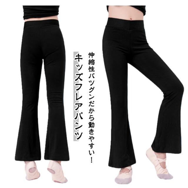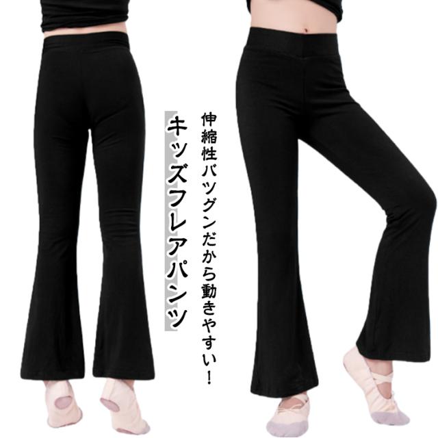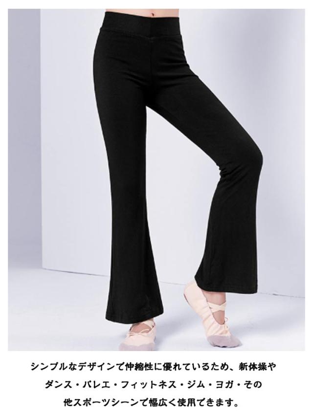 新体操 キッズ バレエパンツ ブーツカット バレエ ストレッチ 女の子 ダンスパンツ パンツ 子供 フレアパンツ ジャズダンス ダンス ロングパンツ フレア ジュニア ブラック 黒 大きいサイズ 伸縮性 2タイプ 快適 通気性 ダンス衣装