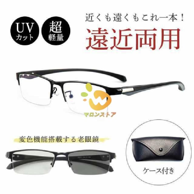 老眼鏡 遠近両用 シニアグラス UVカット ブルーライトカット メンズ メガネ ピントグラス サングラス pcメガネ ケース付き 機能搭載 変色 軽量