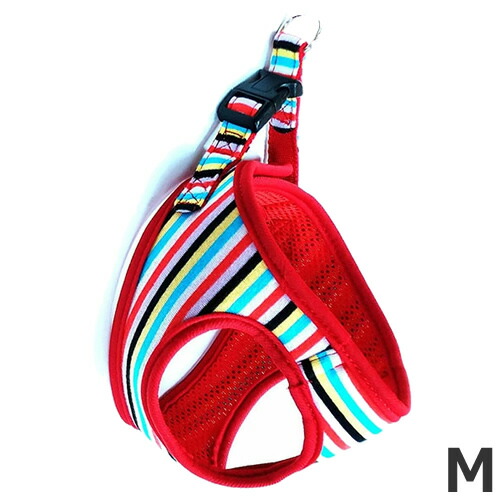 【メール便】岡野製作所 ストライプソフトハーネス M マルチレッド 犬用ハーネス 胴輪 散歩 お出かけ 送料無料