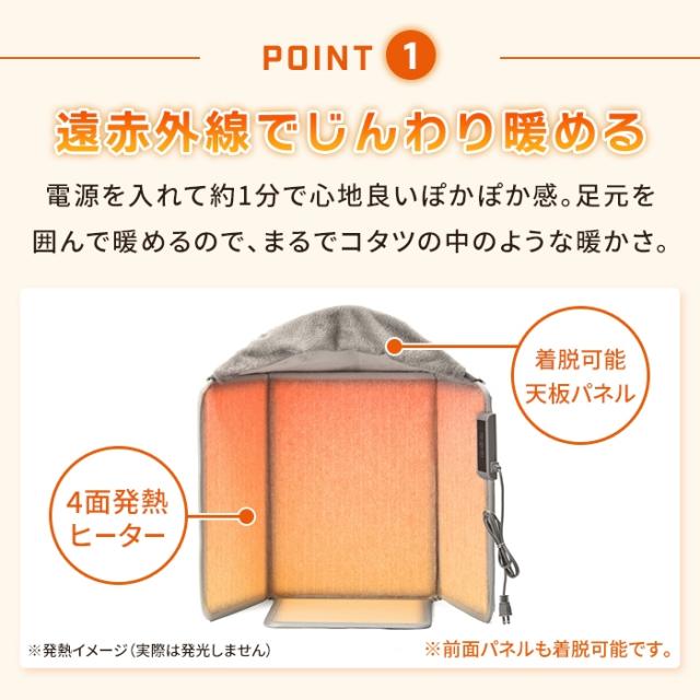 さらに着脱式の天面パネをル装着することでフタの役割を果たし温かさを逃がしにくくなり、まるで自分だけの「簡易こたつ」のように効率よく温めることができ、高い暖房効果を実現します。