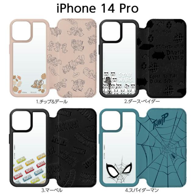 iPhone14Pro ケース 手帳型 耐衝撃 ディズニー iPhone 14 Pro カバー チップ デール マーベル ガラス スターウォーズ カードポケット 収納 スパイダーマン