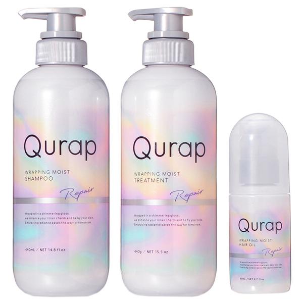 【セット】 キュラップ Qurap ラッピングモイスト 本体 シャンプー 440mL + トリートメント 440g + ヘアオイル 80mL