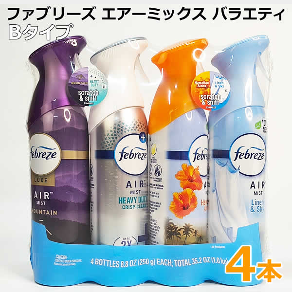 【送料無料】ファブリーズ エアーミックス バラエティ 250g×4本 Bタイプ 消臭スプレー Febreze Air MIST 1kg 室内用 消臭剤 芳香剤 マウンテンの香り ヘビーデューティーの香り ハワイアンアロハの香り リネン&スイカの香り コストコ