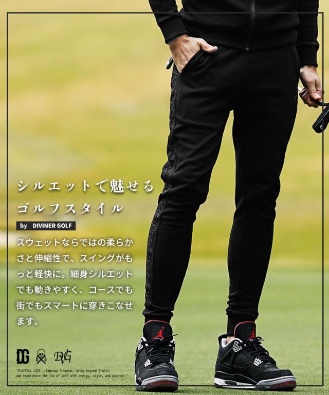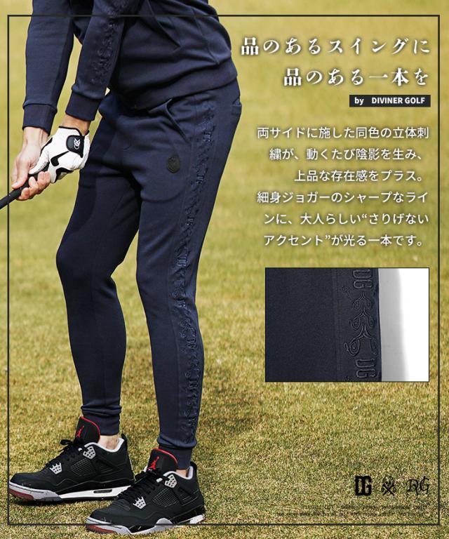【DIVINER GOLF】 ゴルフウェア メンズ ジョガーパンツ ブランド サイド刺繍 スムース生地 ゴルフ ボトムス スウェットパンツ ロングパンツ 杢グレー ブラック ネイビー 大きいサイズ XL XXL ジョーカー JOKER ディバイナーゴルフ