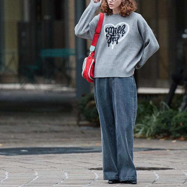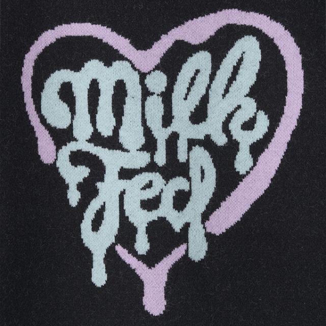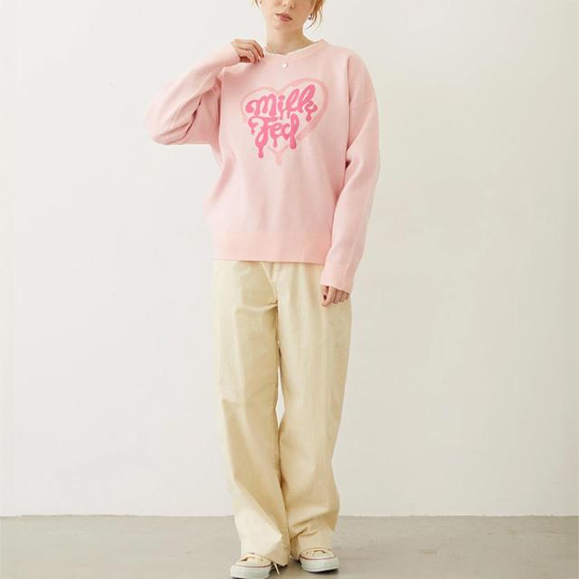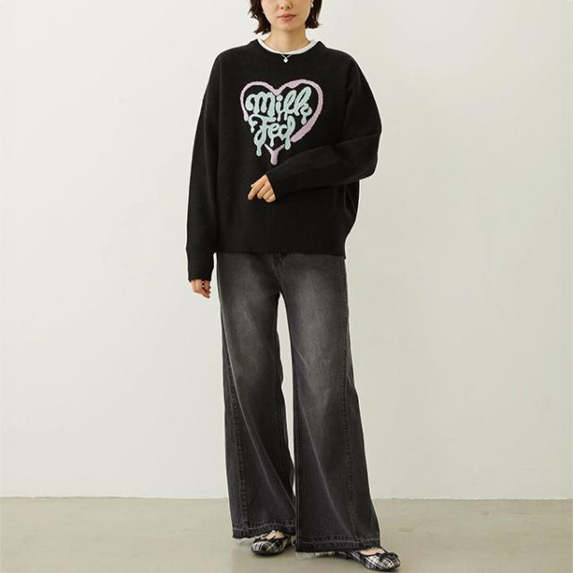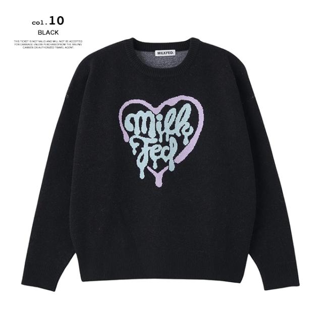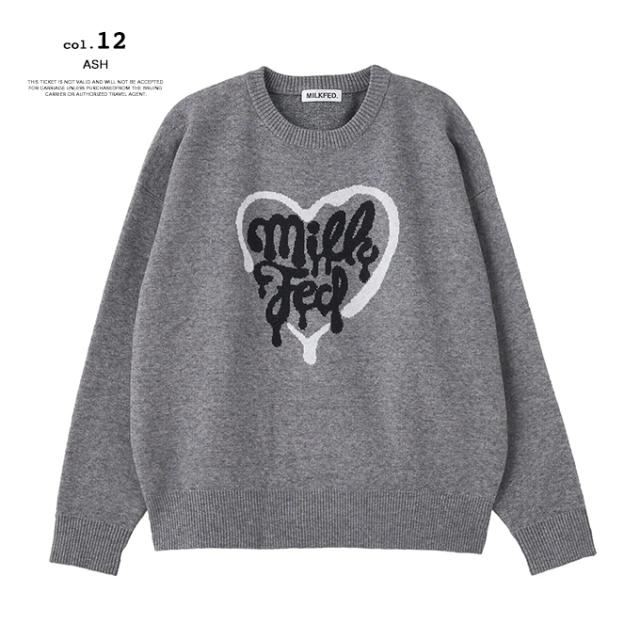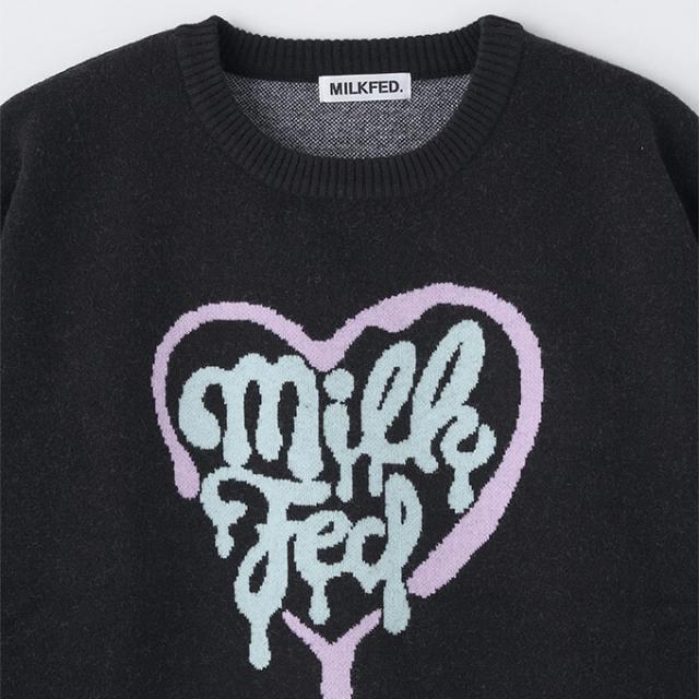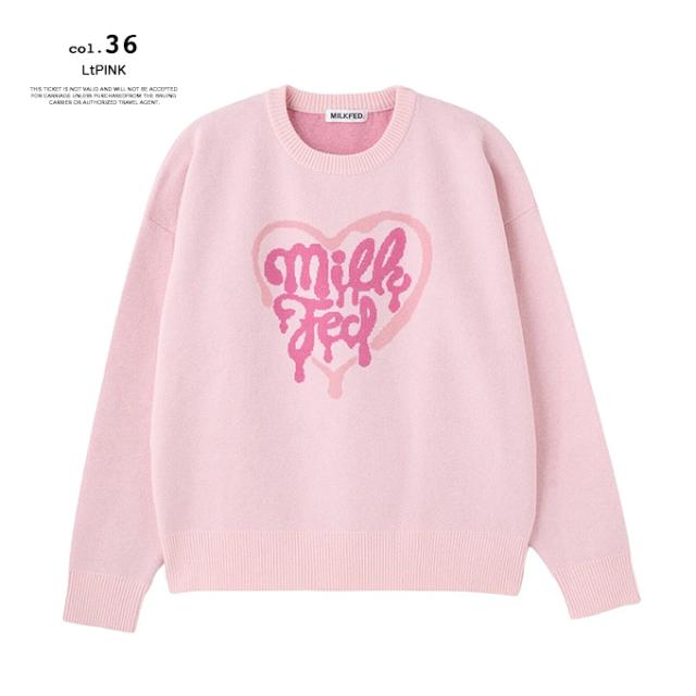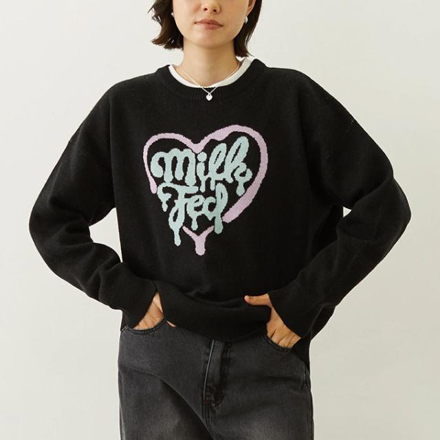 「 MILKFED. ミルクフェド 」 MELTY HEART KNIT TOP メルティー ハート ニット トップ 103254015001 / MILKFED. ミルクフェド ニット セーター ハート ロゴ クルーネック カジュアル ストリート 2025AW