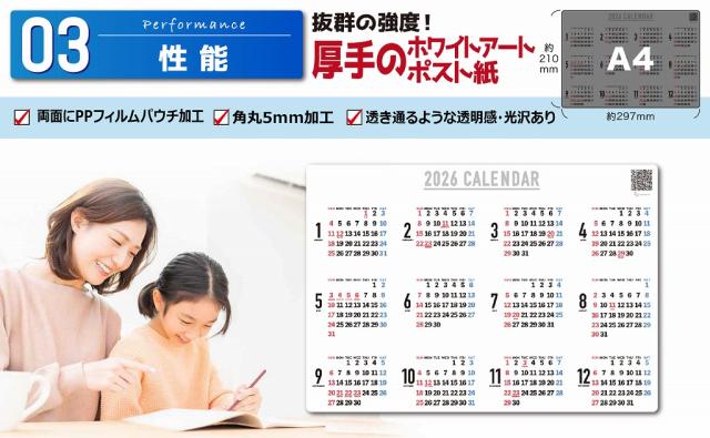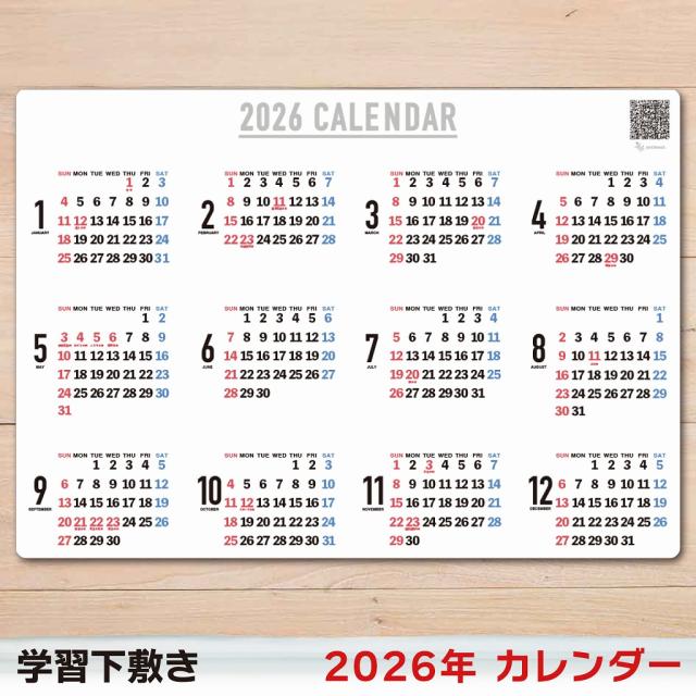 下敷き 2026年 年間カレンダー A4(21×29.7cm) ※代引不可